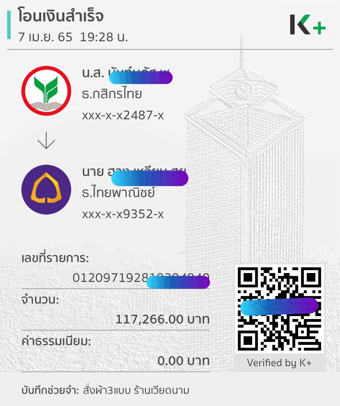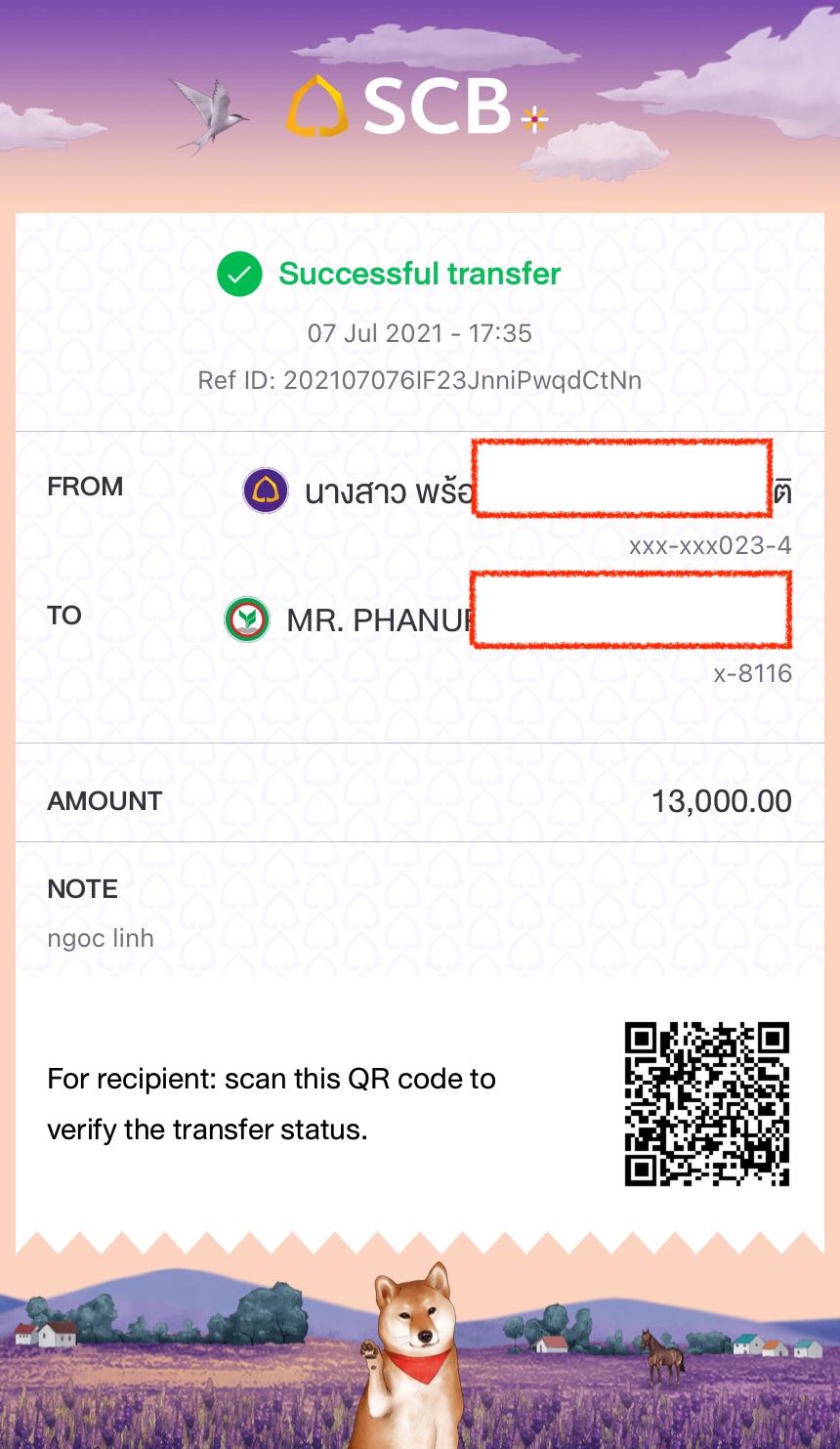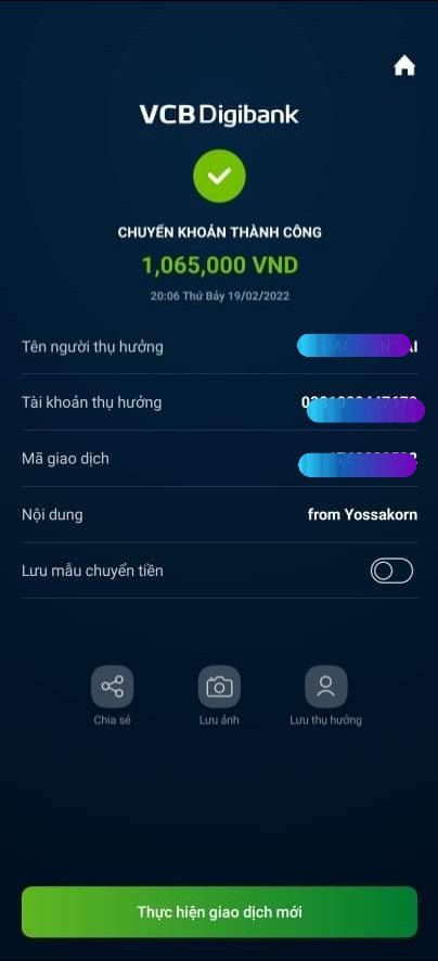 สามารถเดินทางโดยใช้การโอนเงินในไทย และรับเงินโดงเวียดนาม ในเวียดนามเป็นเงินสด หรือในบัตรชำระเงินสดในเวียดนาม
