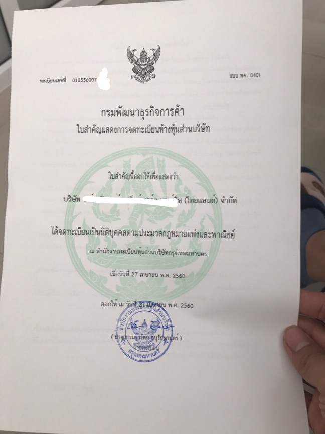 – Yêu cầu: Lập công ty xuất nhập khẩu thực phẩm tại Thái Lan.