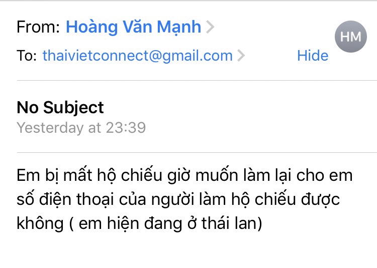 – Nội dung việc: Tư vấn thông tin khách hàng Mạnh về hộ chiếu bị mất tại Thái Lan