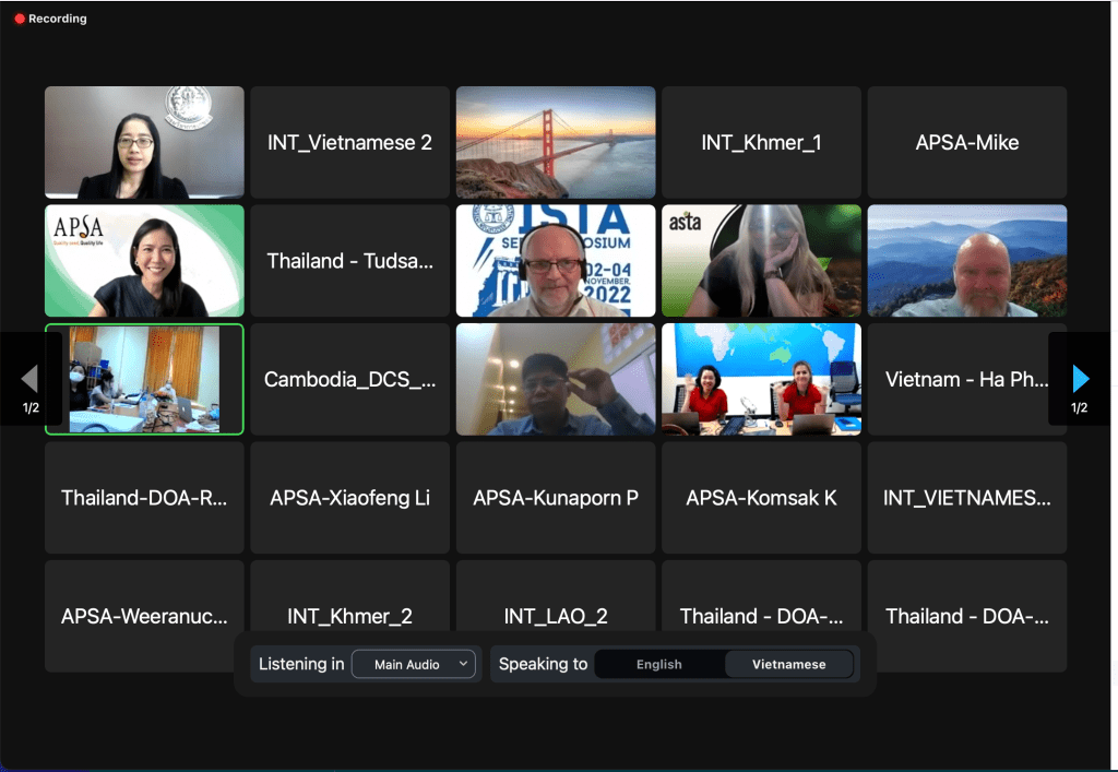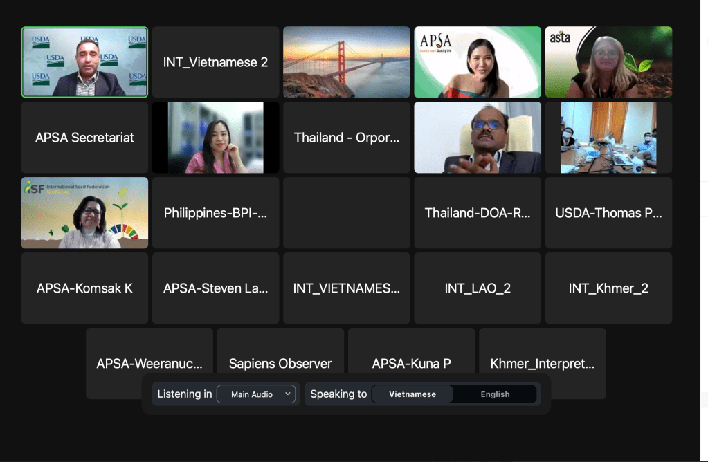 TVC provided #remote#simultaneous#interpretation services for ASPA and Lower Mekong Initiative Workshop on Sustainable Seed System in Bangkok, Thailand from 25-27 July 2022